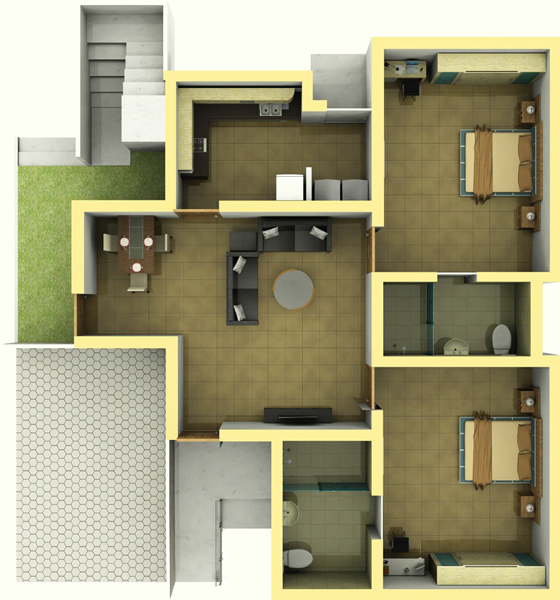 - Senior-friendly living spaces set in clutterfree and nature-inspired environs